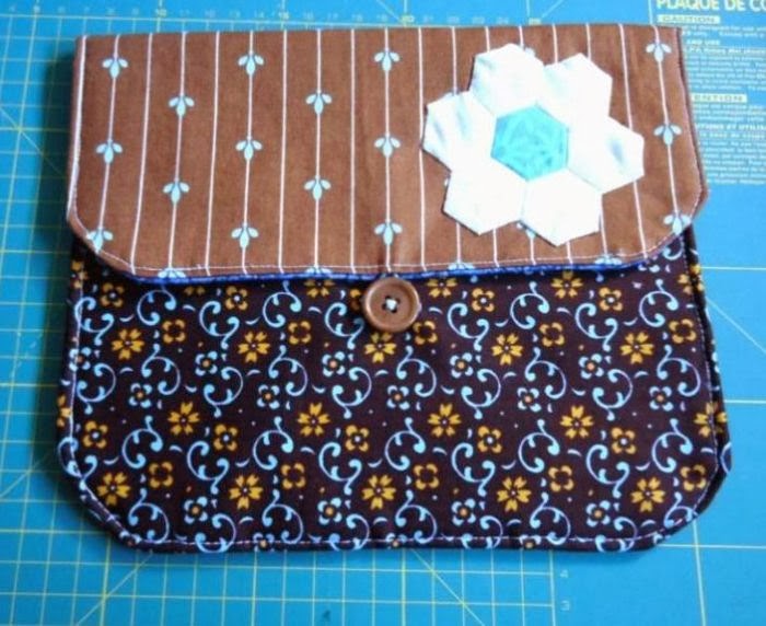 Cartera o como se llame, para el bolso para hacer los recados y llevar las cartillas y demás.Lo he realizado siguiendo el tutorial de Katrin, he modificado las medidas para hacerla más grande .La flor hexágono es blanca, aunque no se note.